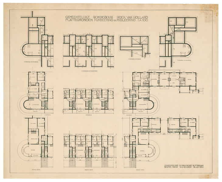 Vanwege de Eerste Wereldoorlog ligt in heel Nederland de bouw van woningen nagenoeg stil, waardoor er overal grote woningnood ontstaat. In 1917 wordt daarom in Rotterdam de Gemeentelijke Woningdienst opgericht. Ook in Hoek van Holland is er behoefte aan woningen, vooral aan betaalbare arbeiderswoningen. Woningbouw en verhuur door particulieren is niet voldoende om het tekort op te heffen. In 1924 komt de Woningdienst met een plan voor 40 woningen met 4 winkels en 4 pakhuizen aan de 2e Scheepvaartstraat. De woningen zijn ontworpen door de architect van de woningdienst, J.J.P. Oud* (1890-1963). Hij was lid van de kunststroming De Stijl en ontwierp onder andere café De Unie in Rotterdam en het Nationaal Monument op de Dam.